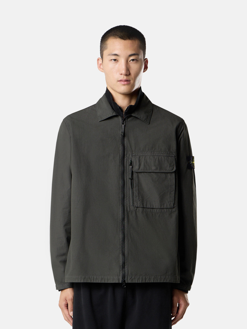 Overshirt in canvas weave cotton. The garment dyeing procedure with specific recipes.