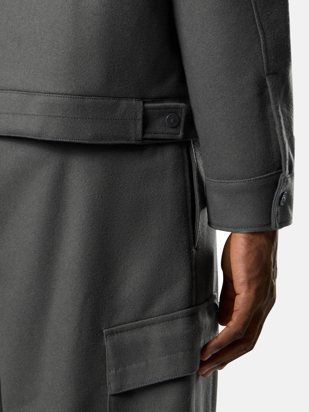 Ghost pieces, derived from the concept of camouflage, are totally monochromatic. Even the Stone Island badge is created in a special monocolour version to blend in with the garment. Zip-up overshirt made from a light carded wool and nylon flannel. The inner face is laminated to a breathable membrane that provides wind-resistant and mildly water-resistant properties.