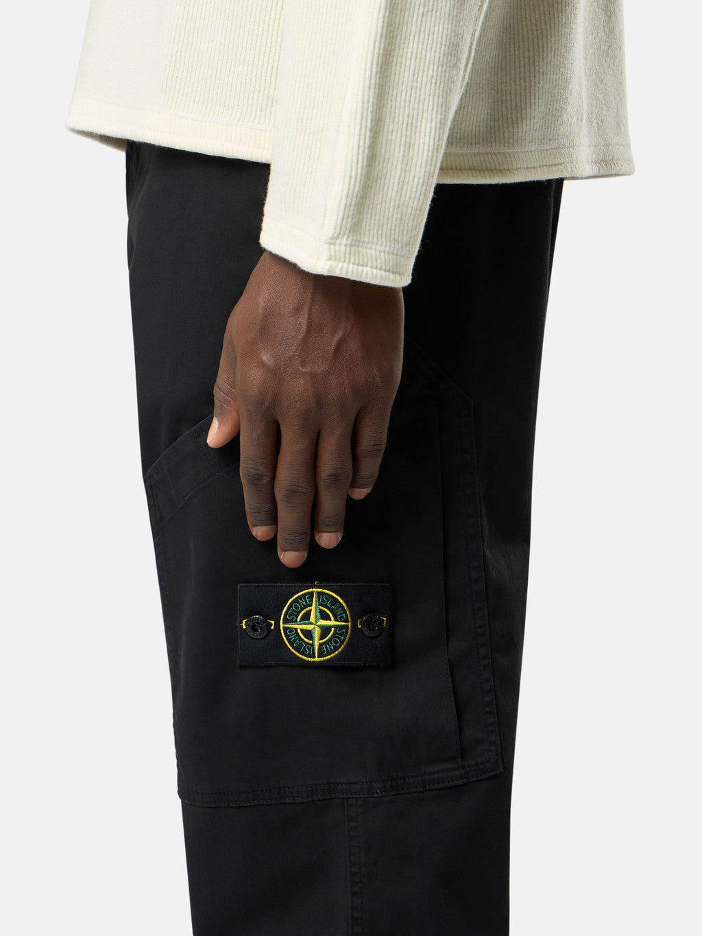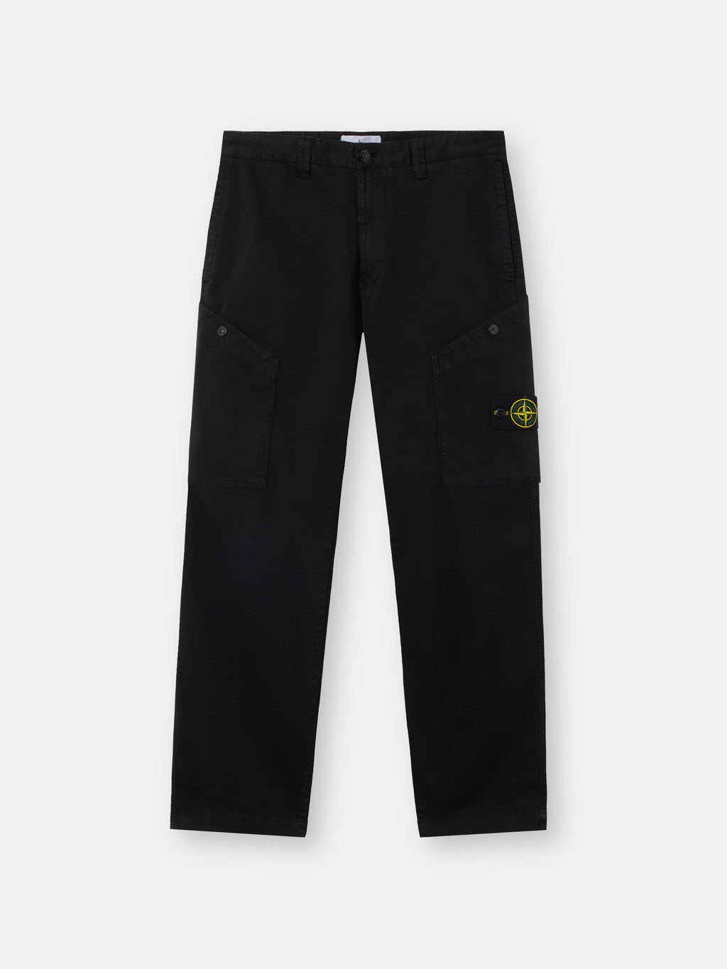 Cargo trousers in organic stretch cotton satin. Garment dyed.