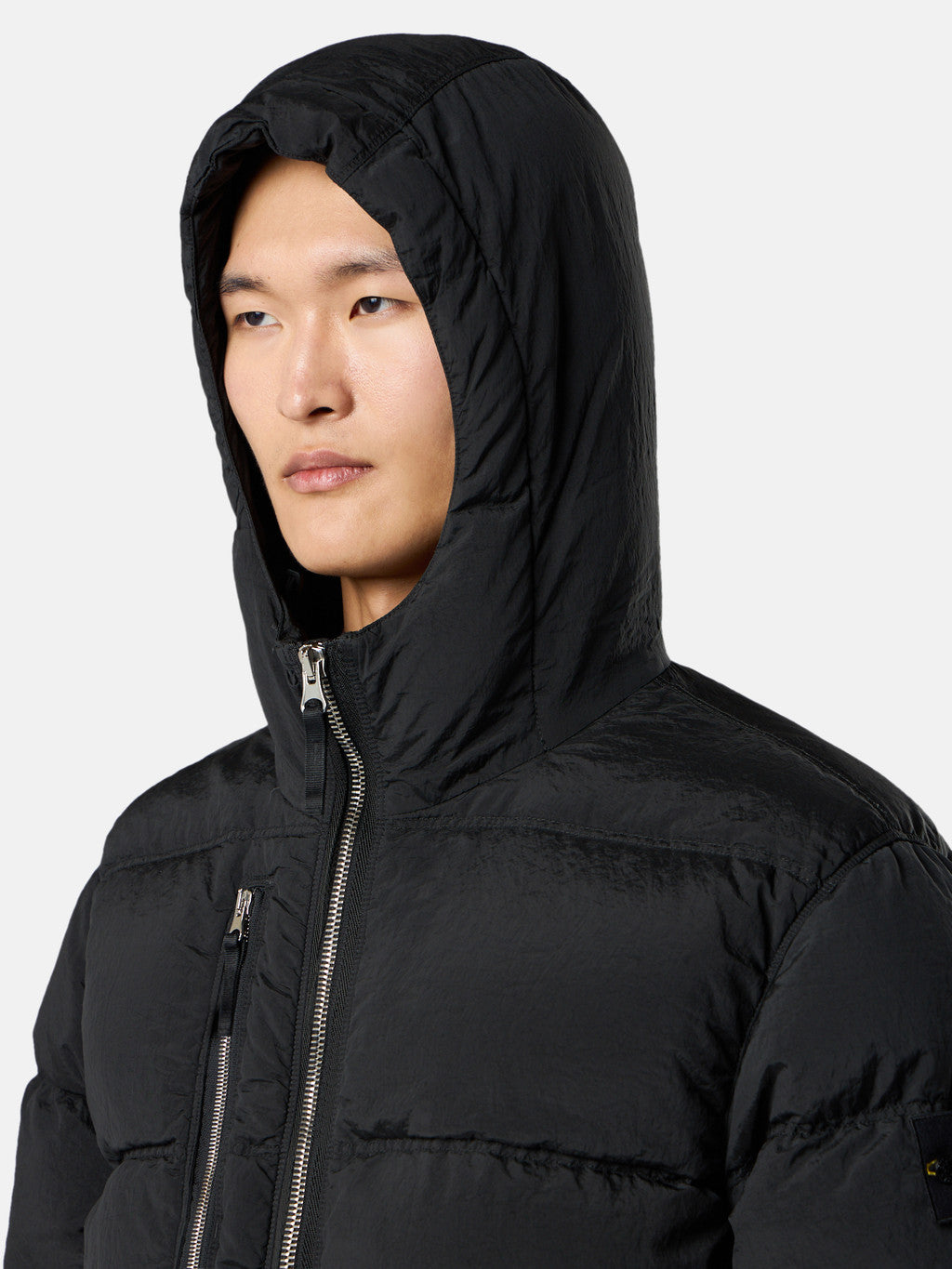 Hooded down parka in Stone Island's iridescent Nylon Metal fabric. The evolution of this iconic fabric sees the use of ECONYL regenerated yarns: the life ended nylon, pre- and post-consumer, is recycled with a complex depolymerization process to create this fibre that features the same intrinsic characteristics of nylon from fossil raw material. Garment dyed with a double colour recipe and the addition of a special anti-drop agent. Padded with the finest feathers specifically treated to withstand the garment dyeing procedure. RDS - Responsible Down Standard certified.