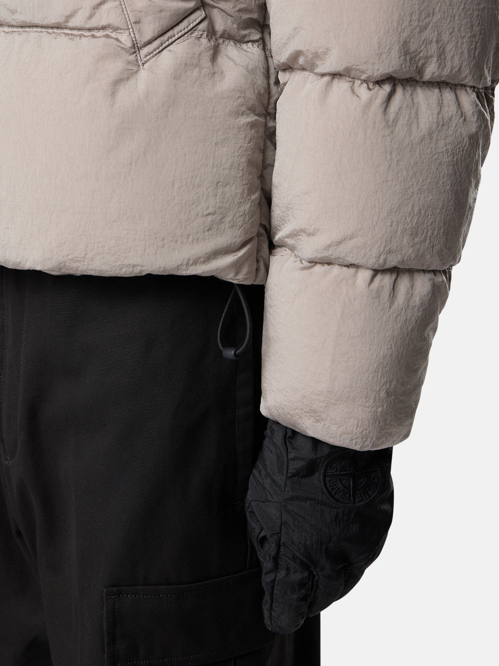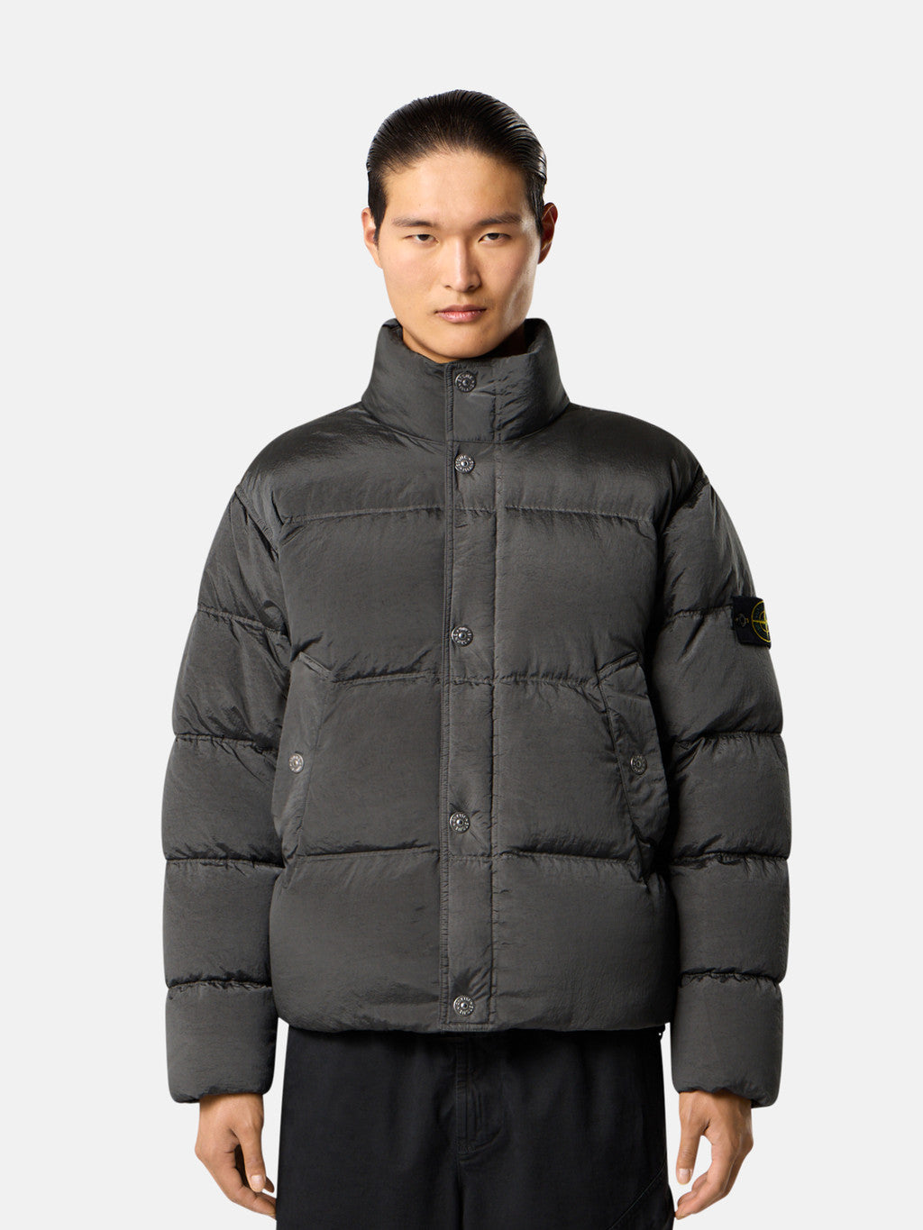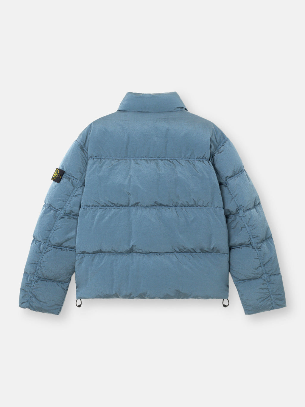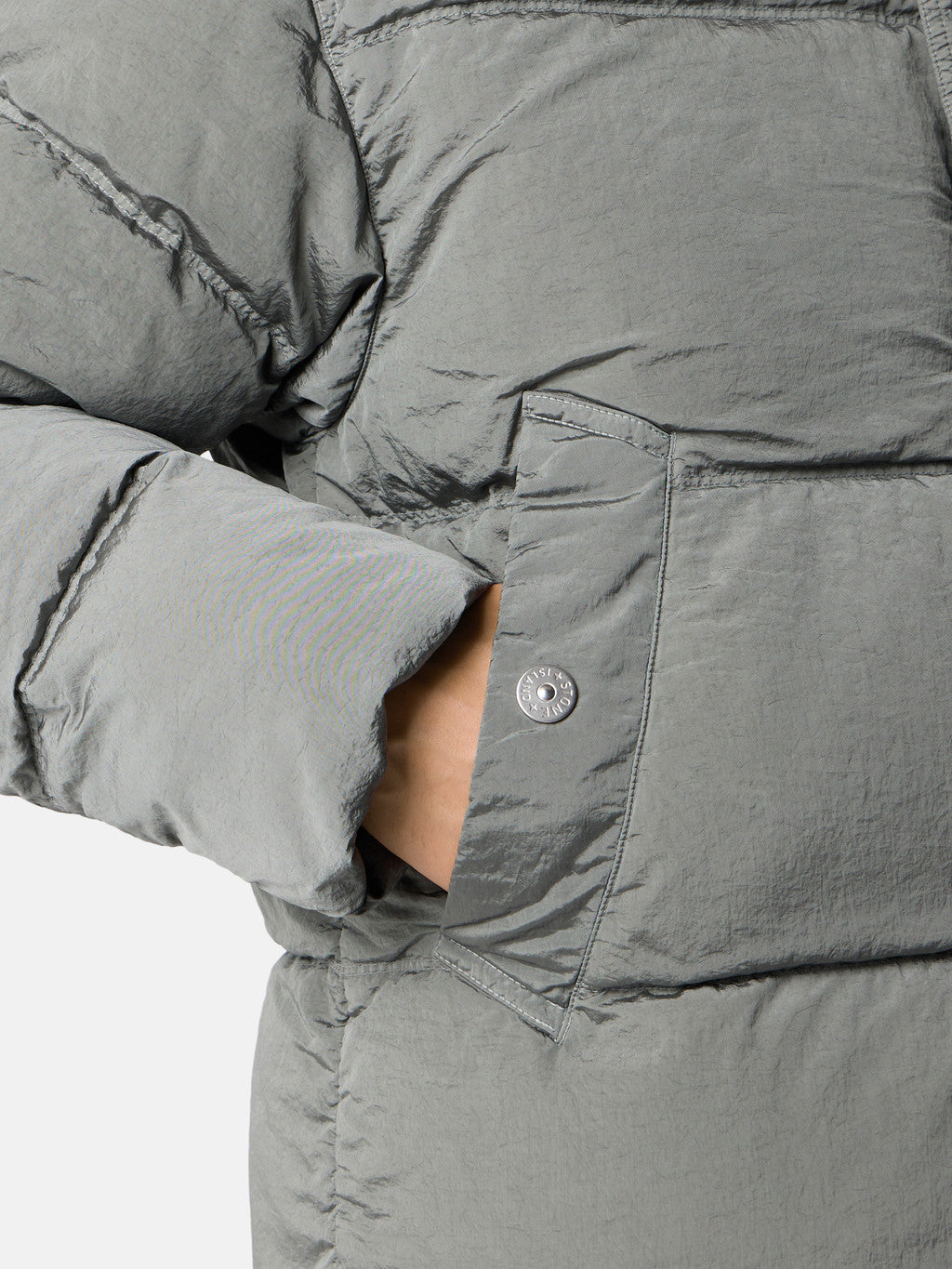 Down jacket in Stone Island's iridescent Nylon Metal fabric. The evolution of this iconic fabric sees the use of ECONYL regenerated yarns: the life ended nylon, pre- and post-consumer, is recycled with a complex depolymerization process to create this fibre that features the same intrinsic characteristics of nylon from fossil raw material. Garment dyed with a double colour recipe and the addition of a special anti-drop agent. Padded with the finest feathers specifically treated to withstand the garment dyeing procedure. RDS - Responsible Down Standard certified.