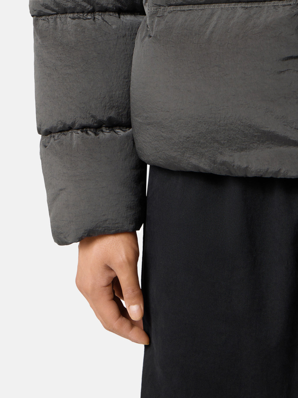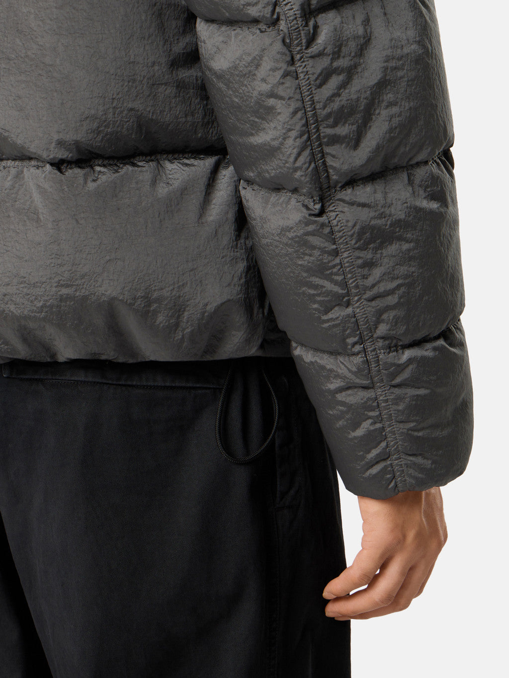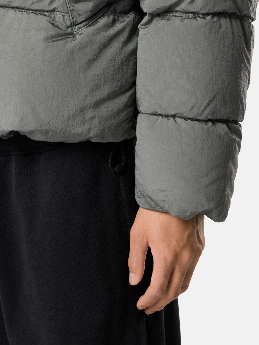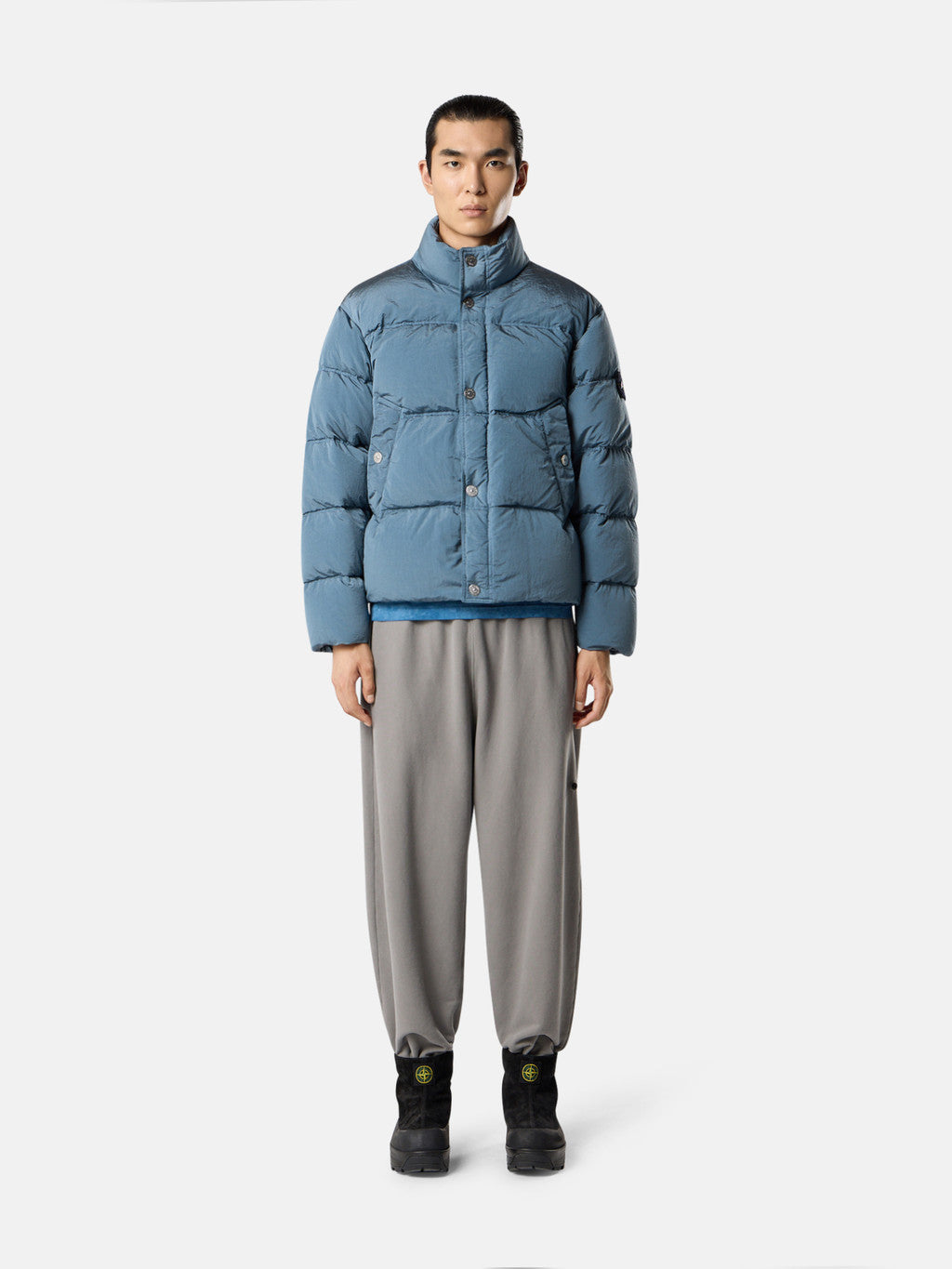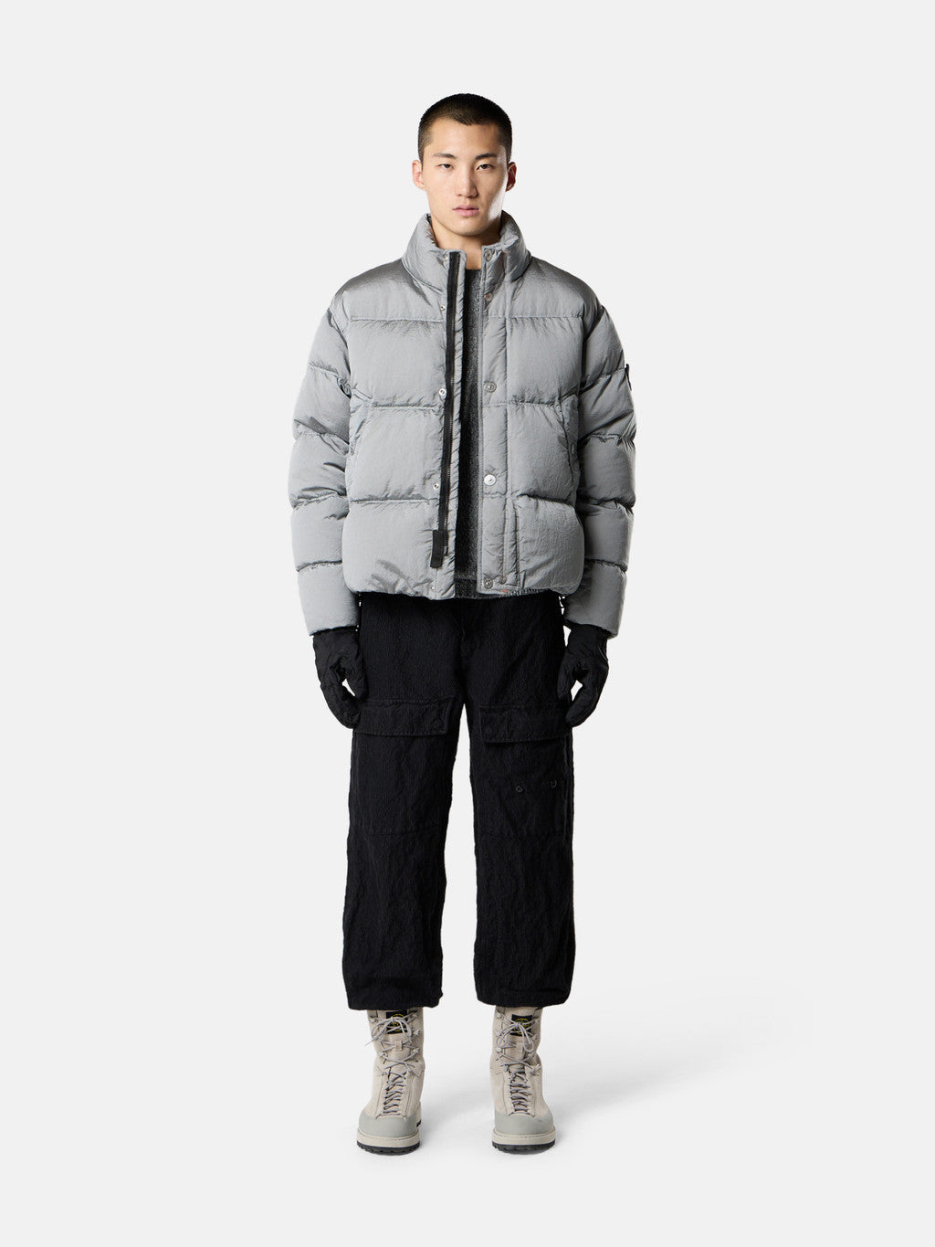 Down jacket in Stone Island's iridescent Nylon Metal fabric. The evolution of this iconic fabric sees the use of ECONYL regenerated yarns: the life ended nylon, pre- and post-consumer, is recycled with a complex depolymerization process to create this fibre that features the same intrinsic characteristics of nylon from fossil raw material. Garment dyed with a double colour recipe and the addition of a special anti-drop agent. Padded with the finest feathers specifically treated to withstand the garment dyeing procedure. RDS - Responsible Down Standard certified.