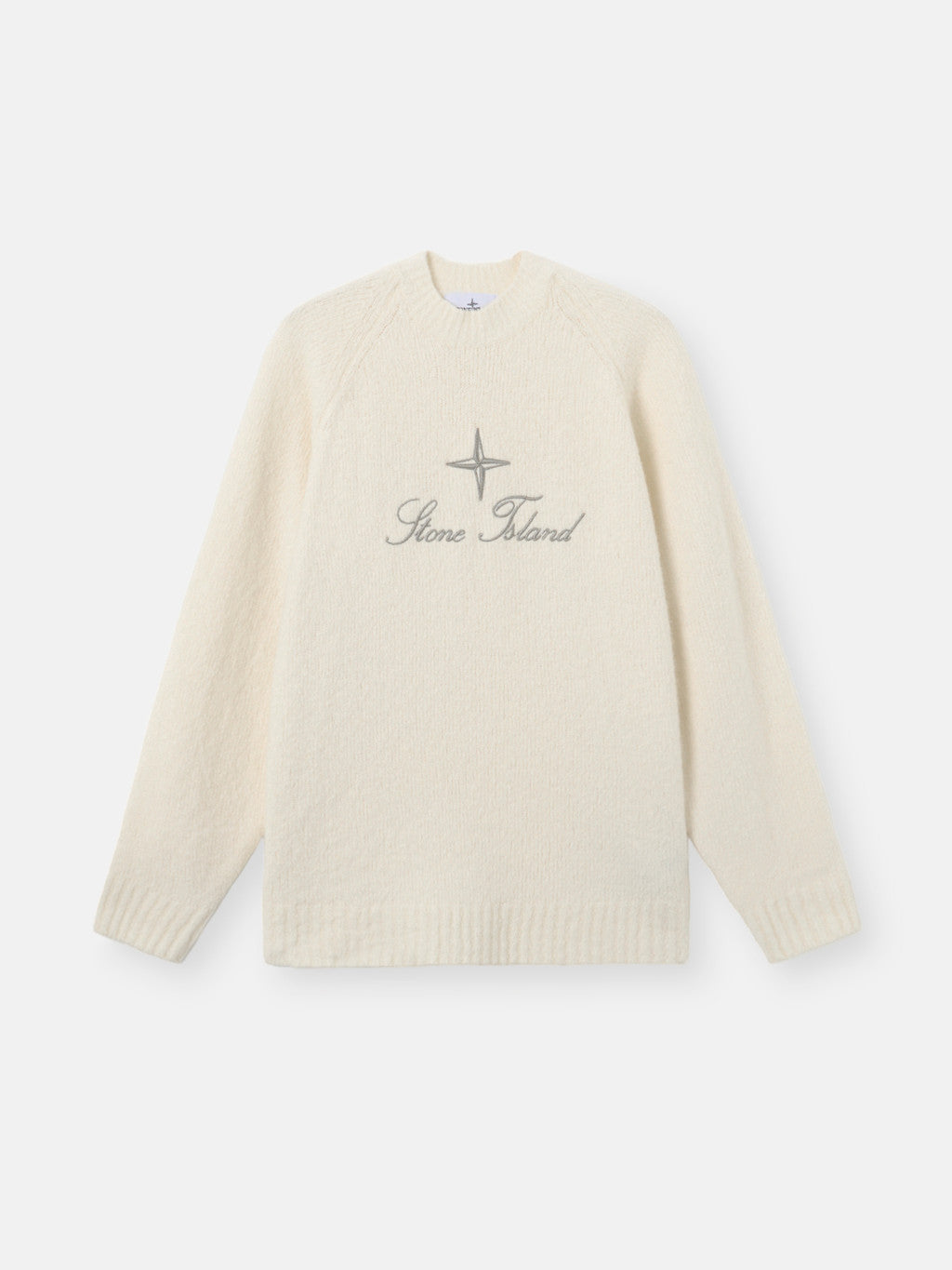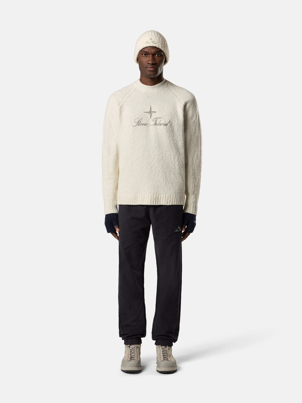 Knit crewneck jumper in wool nylon BOUCLE. Stocking stitch. Gauge 5.
