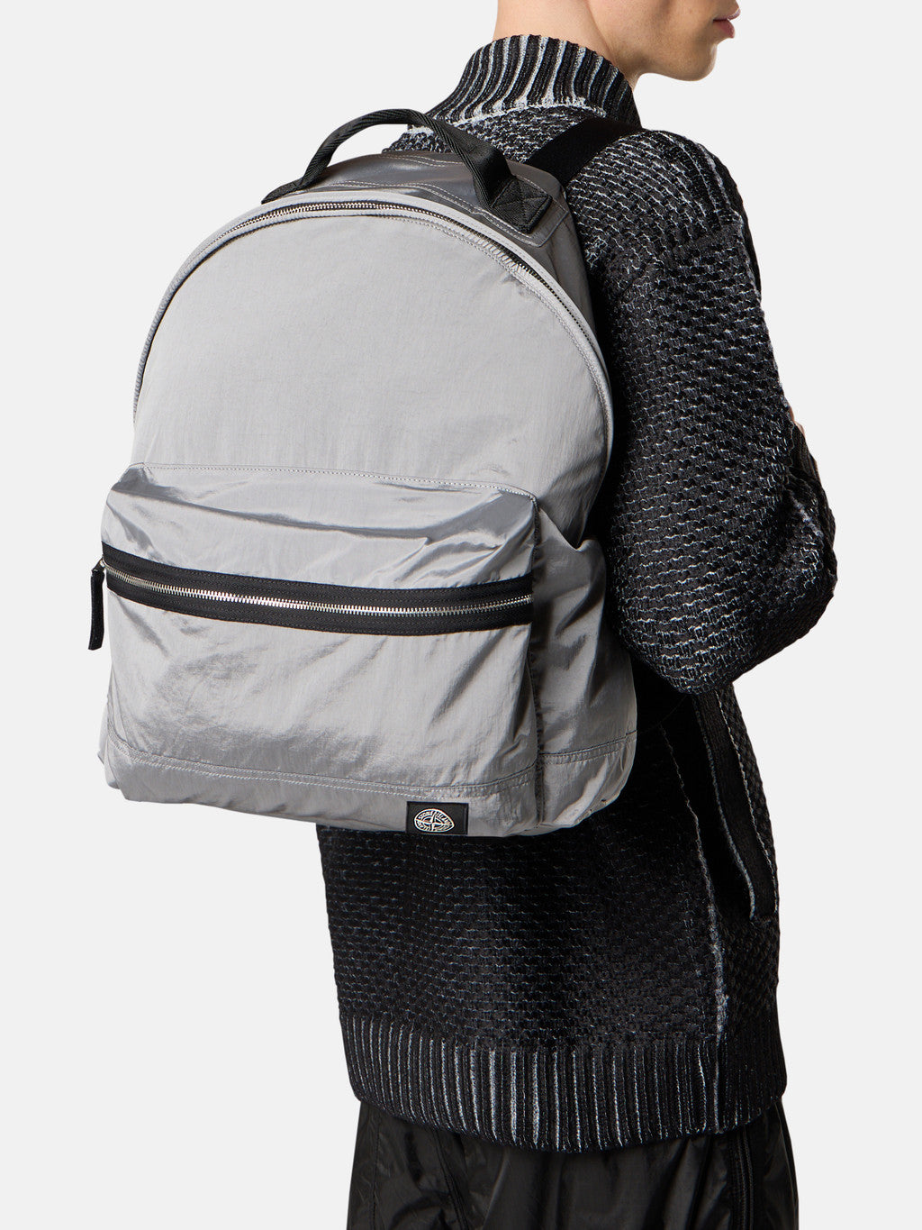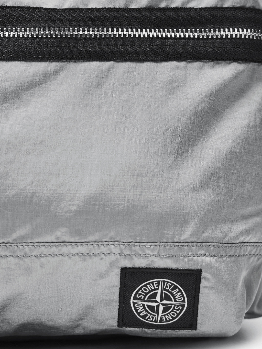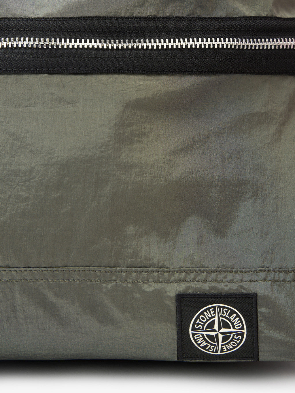 Backpack in Stone Island's iridescent Nylon Metal fabric with polyurethane coating. The evolution of this iconic fabric sees the use of ECONYL regenerated yarns: the life ended nylon, pre- and post-consumer, is recycled with a complex depolymerization process to create this fibre that features the same intrinsic characteristics of nylon from fossil raw material.