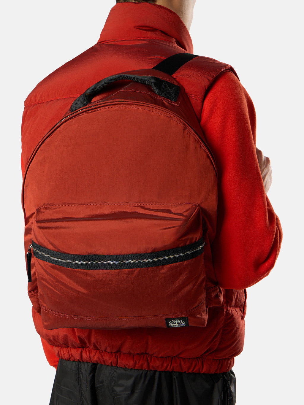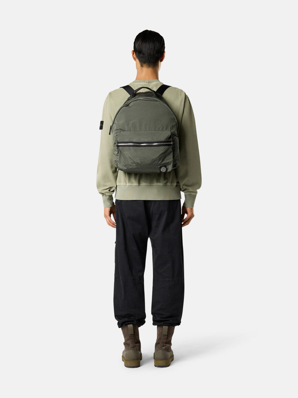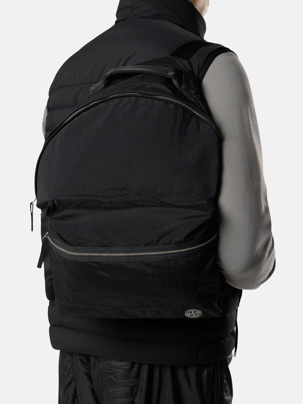 Backpack in Stone Island's iridescent Nylon Metal fabric with polyurethane coating. The evolution of this iconic fabric sees the use of ECONYL regenerated yarns: the life ended nylon, pre- and post-consumer, is recycled with a complex depolymerization process to create this fibre that features the same intrinsic characteristics of nylon from fossil raw material.