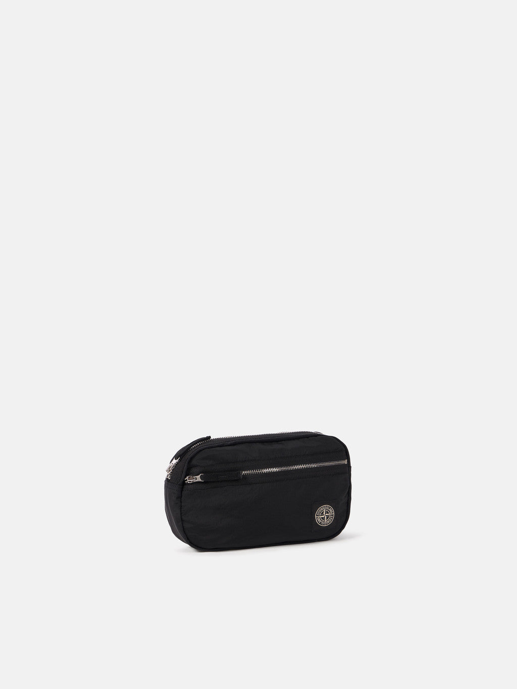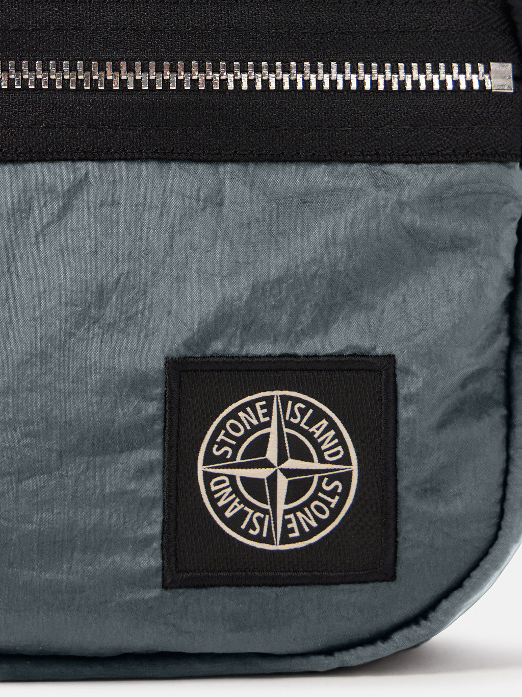 Belt bag in Stone Island's iridescent Nylon Metal fabric with polyurethane coating. The evolution of this iconic fabric sees the use of ECONYL regenerated yarns: the life ended nylon, pre- and post-consumer, is recycled with a complex depolymerization process to create this fibre that features the same intrinsic characteristics of nylon from fossil raw material.