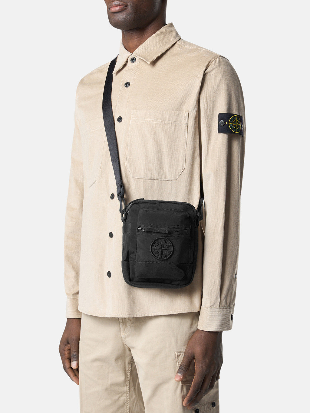 Pouch bag made in the responsible Stone Island iridescent Nylon Metal fabric. The evolution of this iconic fabric sees the use of ECONYL regenerated yarns: the life ended nylon, pre and post-consumer, is recycled with a complex depolymerization process to create this fibre that features the same intrinsic characteristics of nylon from fossil raw material.