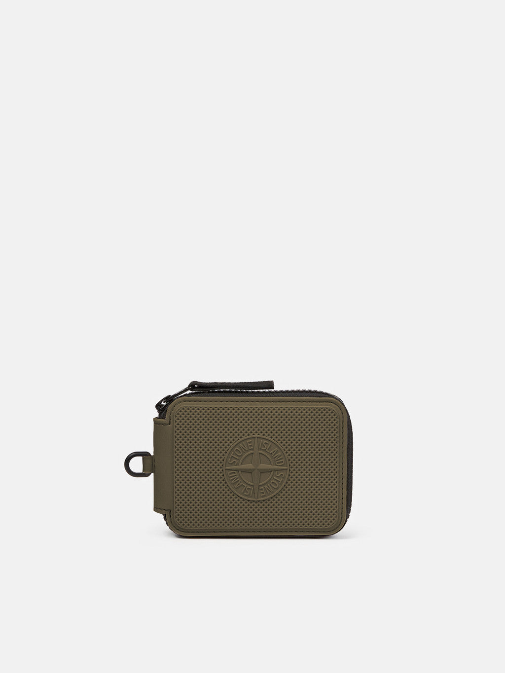 Wallet in silicone inspired by debossed rubber patches on Stone Island garments of the 1980s.