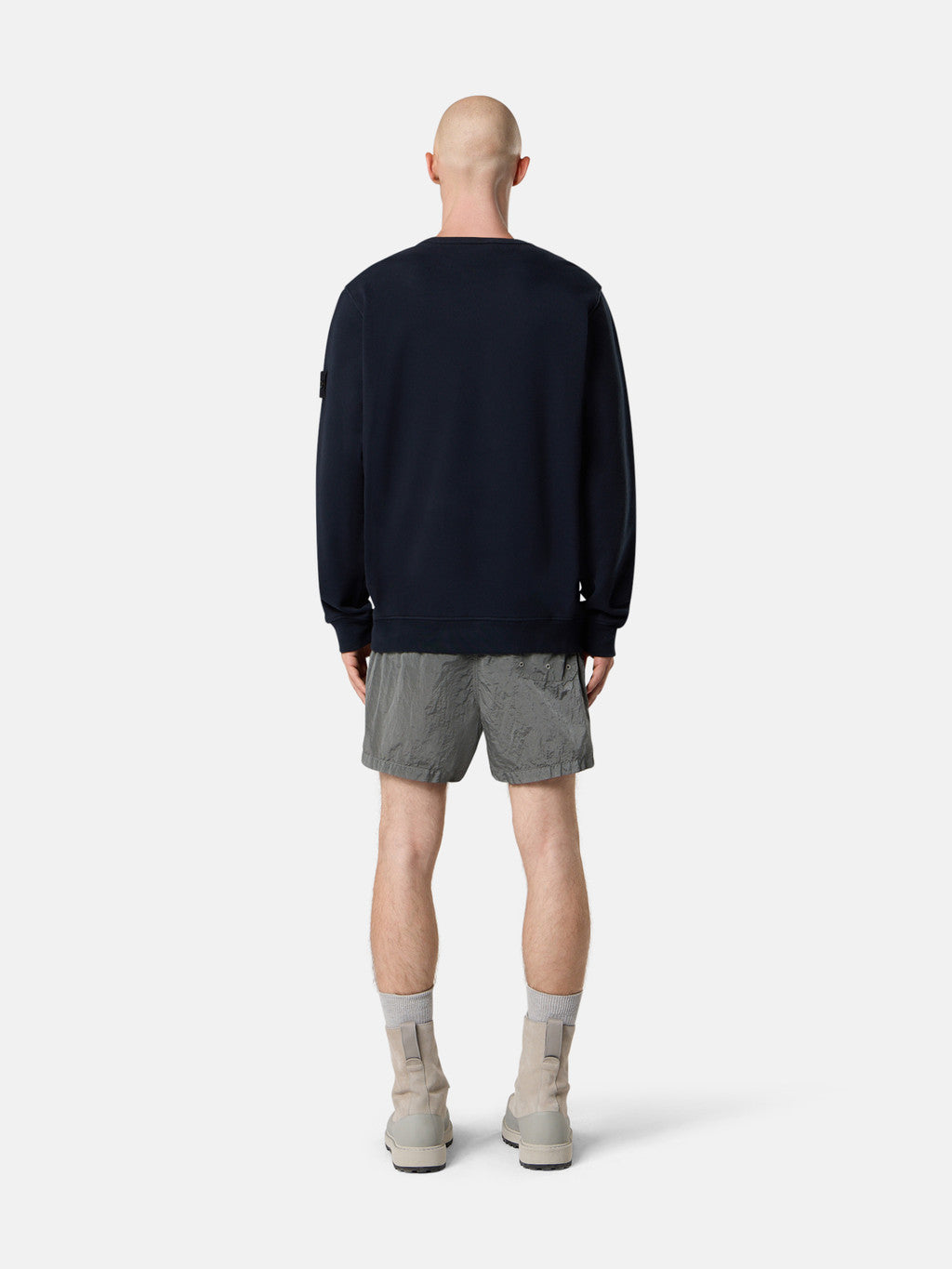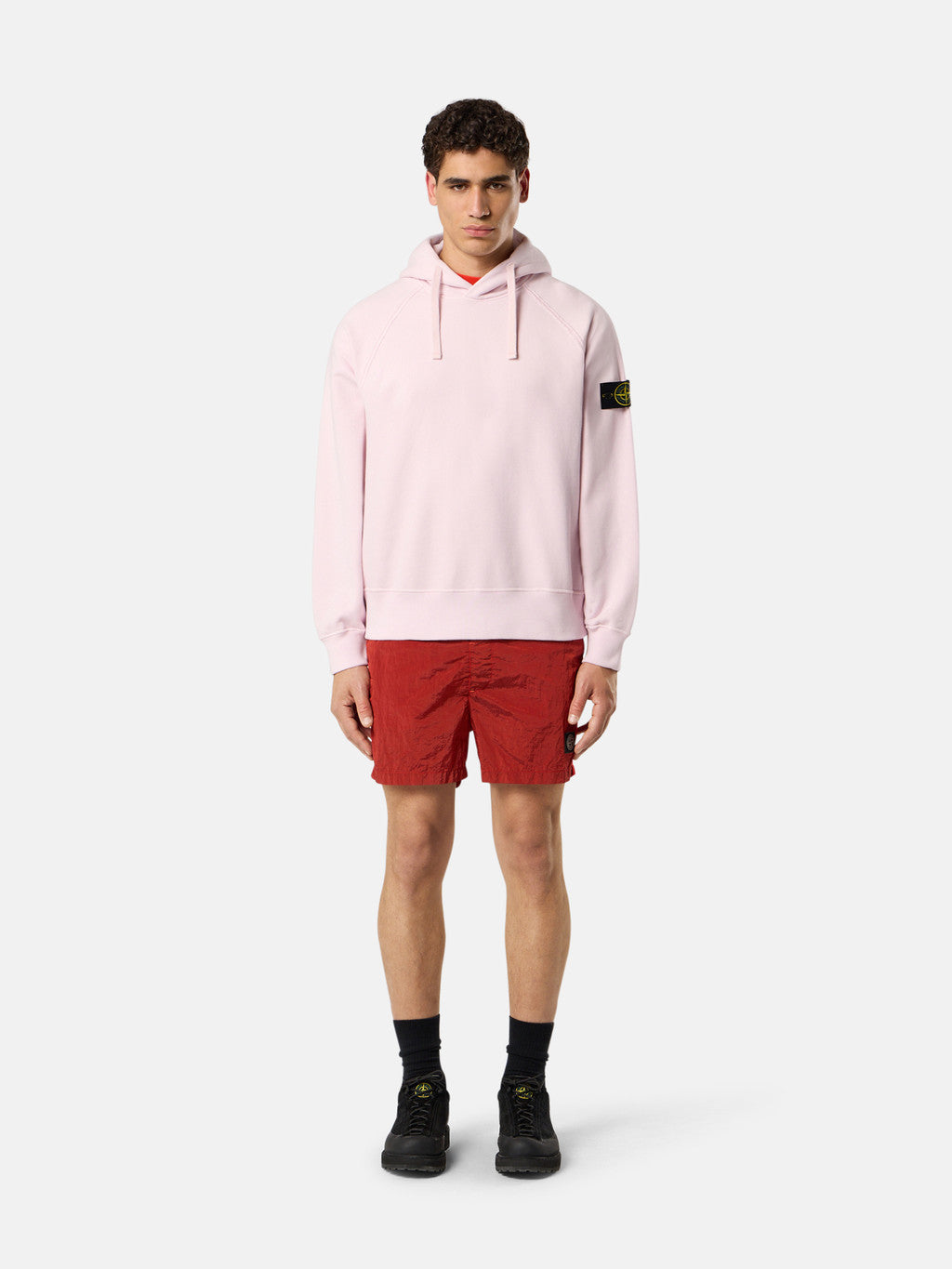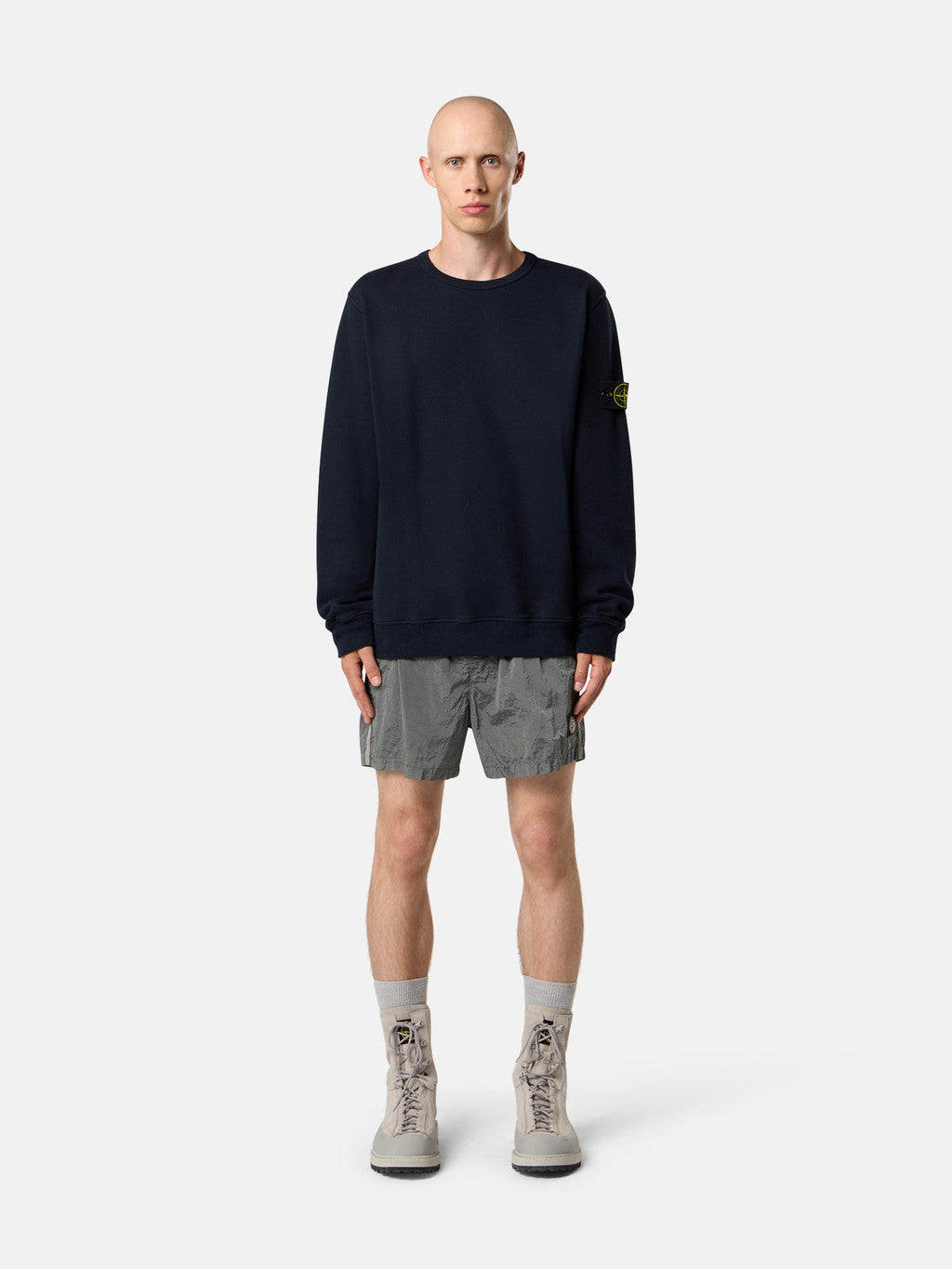 Swim shorts in Stone Island's iridescent Nylon Metal fabric. The evolution of this iconic fabric sees the use of ECONYL regenerated yarns: the life ended nylon, pre- and post-consumer, is recycled with a complex depolymerization process to create this fibre that features the same intrinsic characteristics of nylon from fossil raw material. Garment dyed with a double colour recipe. Nylon mesh lining.
