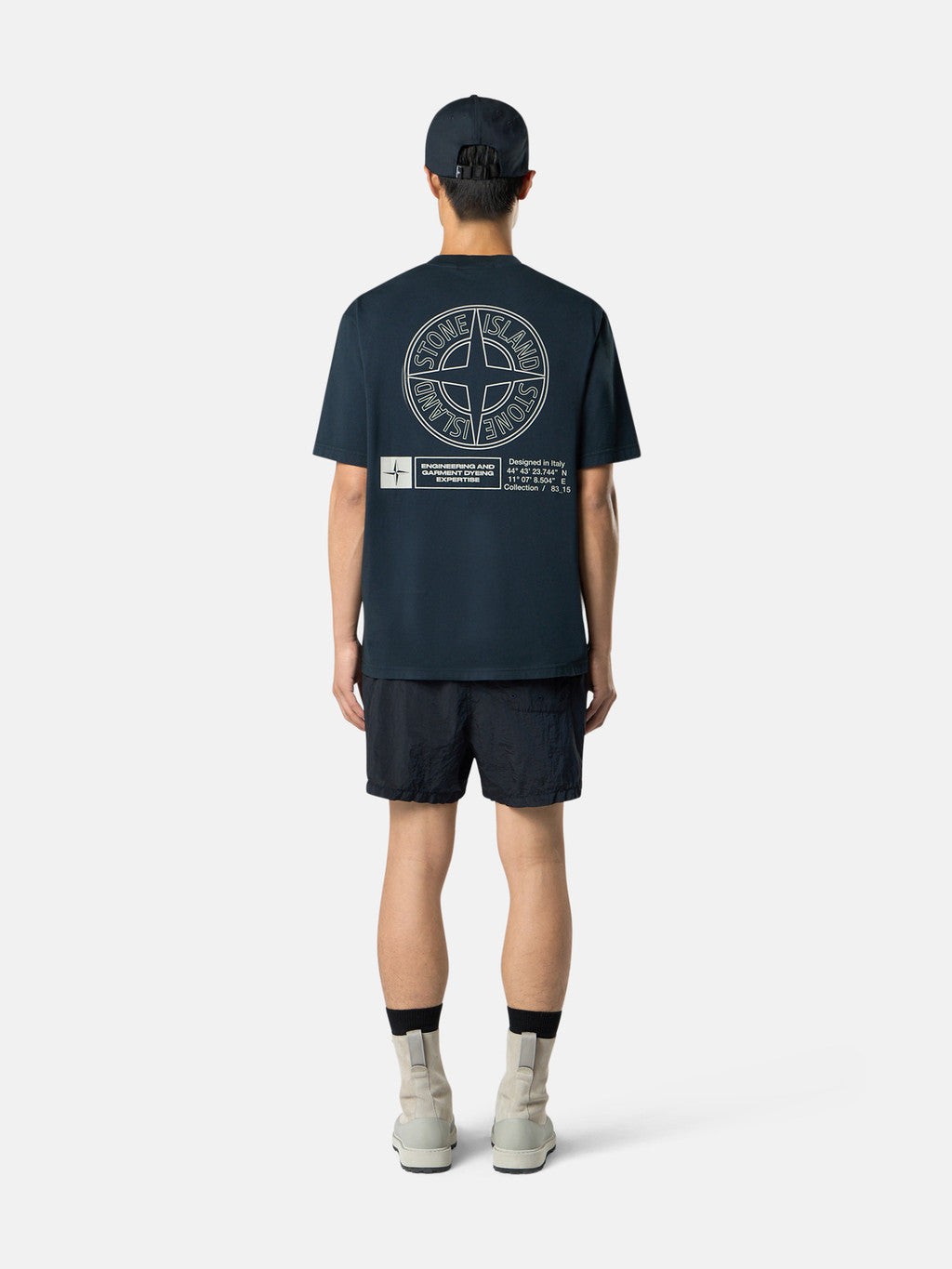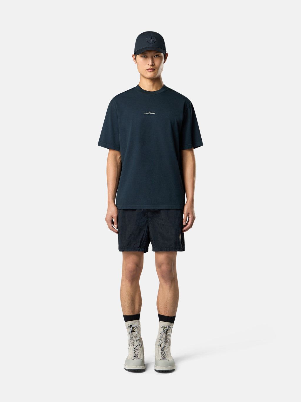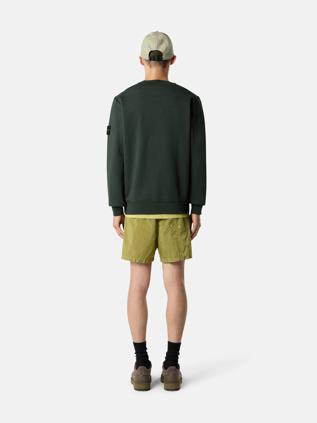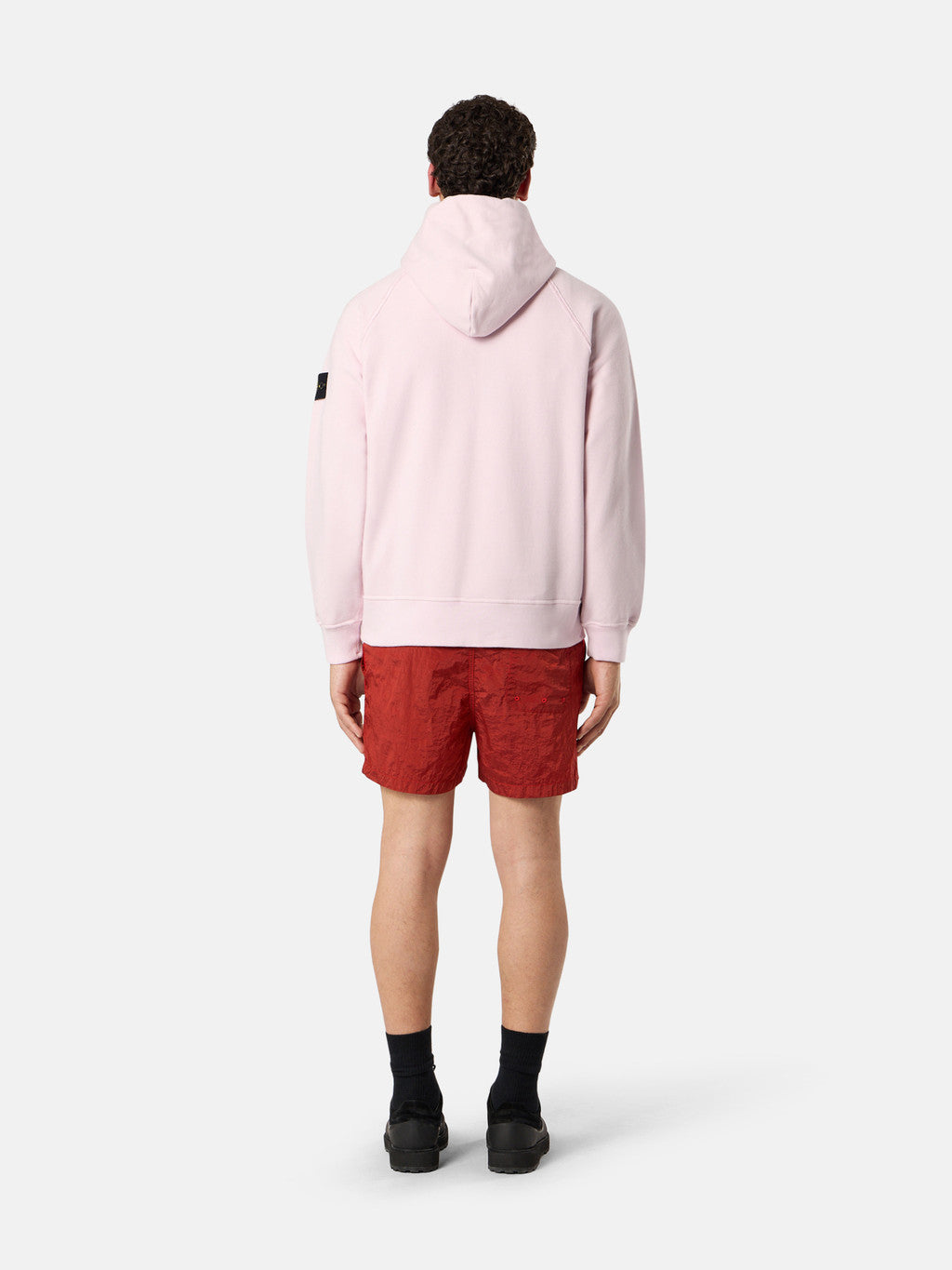 Swim shorts in Stone Island's iridescent Nylon Metal fabric. The evolution of this iconic fabric sees the use of ECONYL regenerated yarns: the life ended nylon, pre- and post-consumer, is recycled with a complex depolymerization process to create this fibre that features the same intrinsic characteristics of nylon from fossil raw material. Garment dyed with a double colour recipe. Nylon mesh lining.