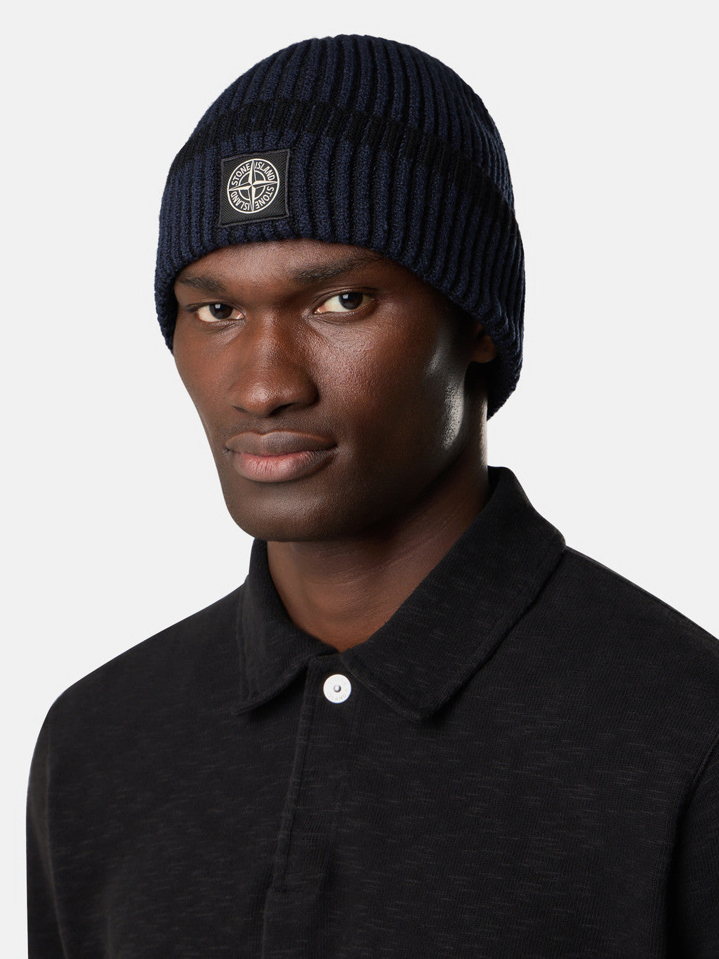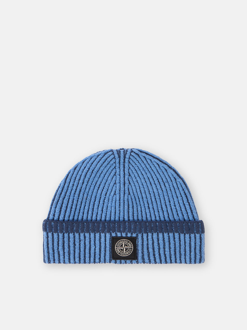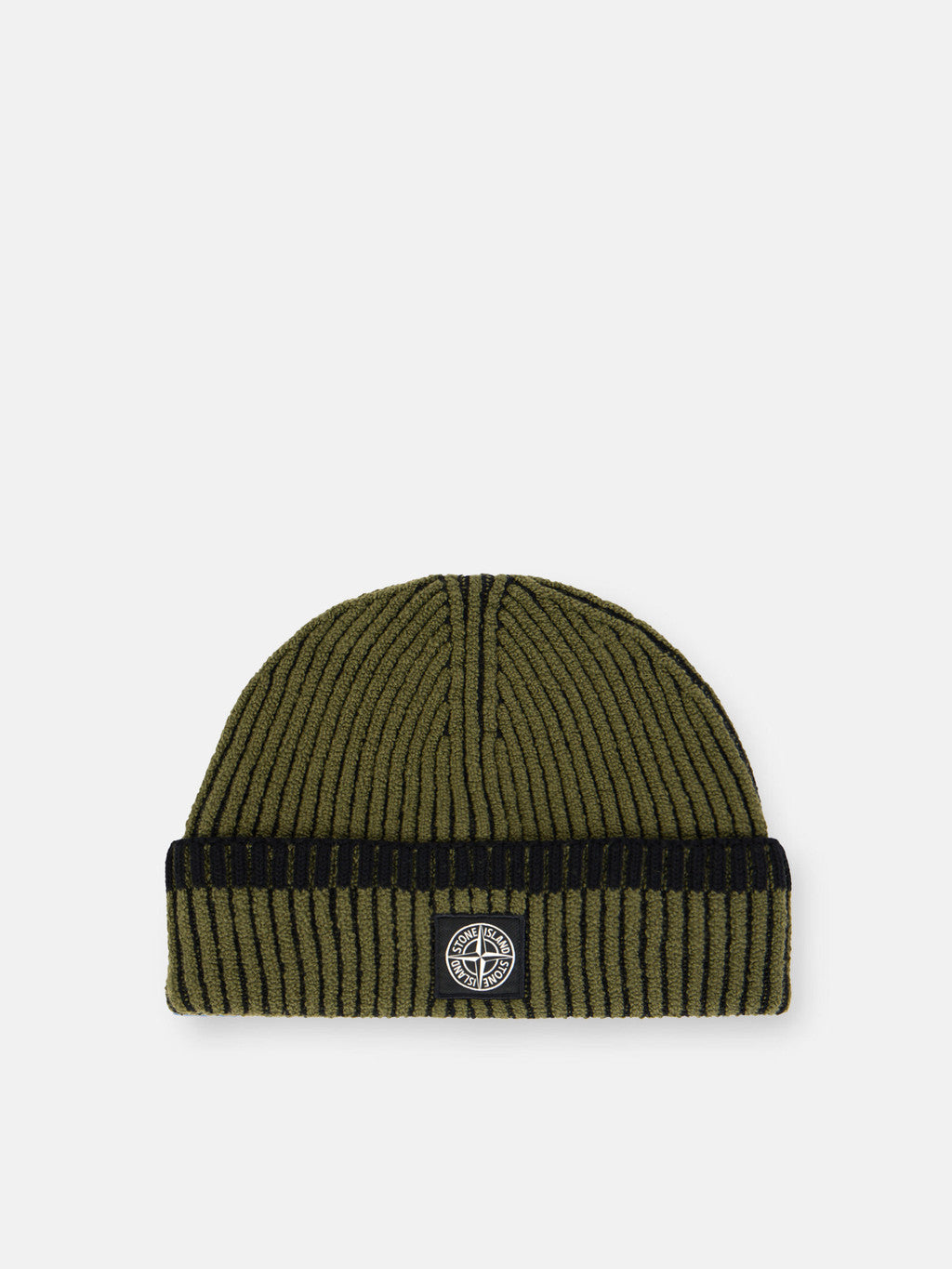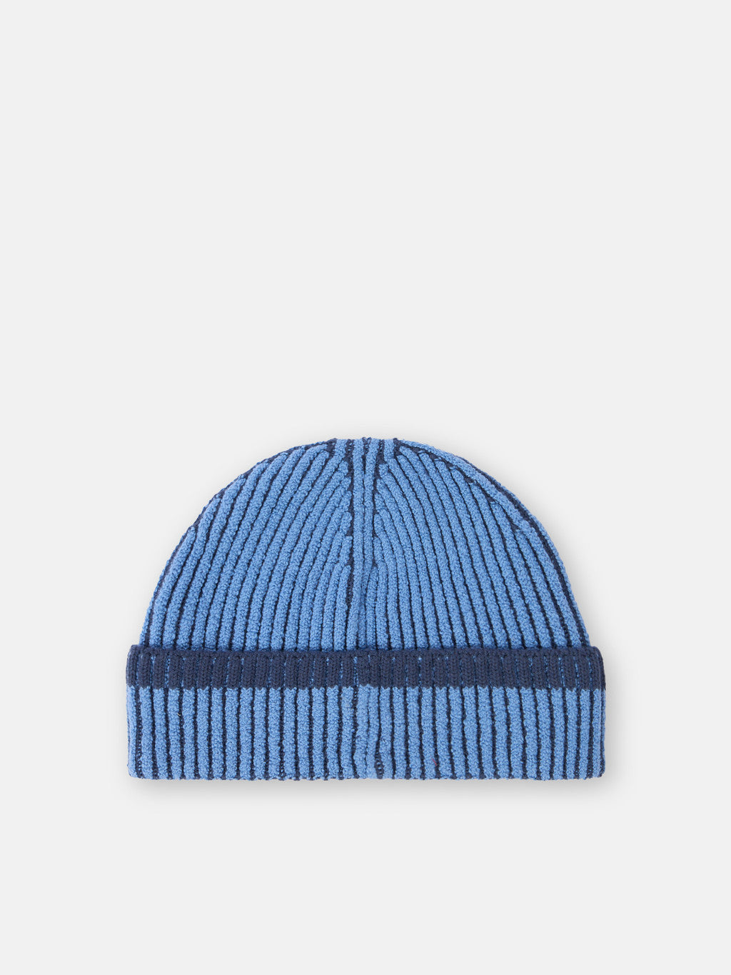 Knit beanie with full ribbing, in RWS certified wool with two different coloured yarns, worked with the vanise technique to obtain a deeper perception of the rib and contrasting colour placements. Gauge 7. The Responsible Wool Standard (RWS) describes and certifies animal welfare and land management practices in wool production and tracks the certified material from farm to final product.