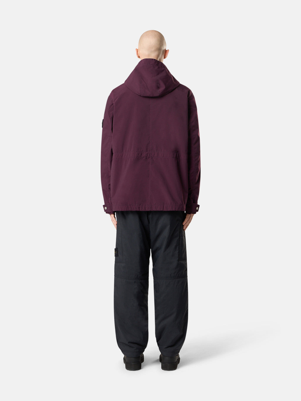 Hooded field jacket made from a lightweight canvas with 60% recycled polyester, featuring a super matt appearance and a cotton-like hand. The fabric compacts and takes on its final appearance through the garment dyeing procedure at 130¡ã under pressure. The addition of a special agent to the dye recipe makes the garment anti-drop.