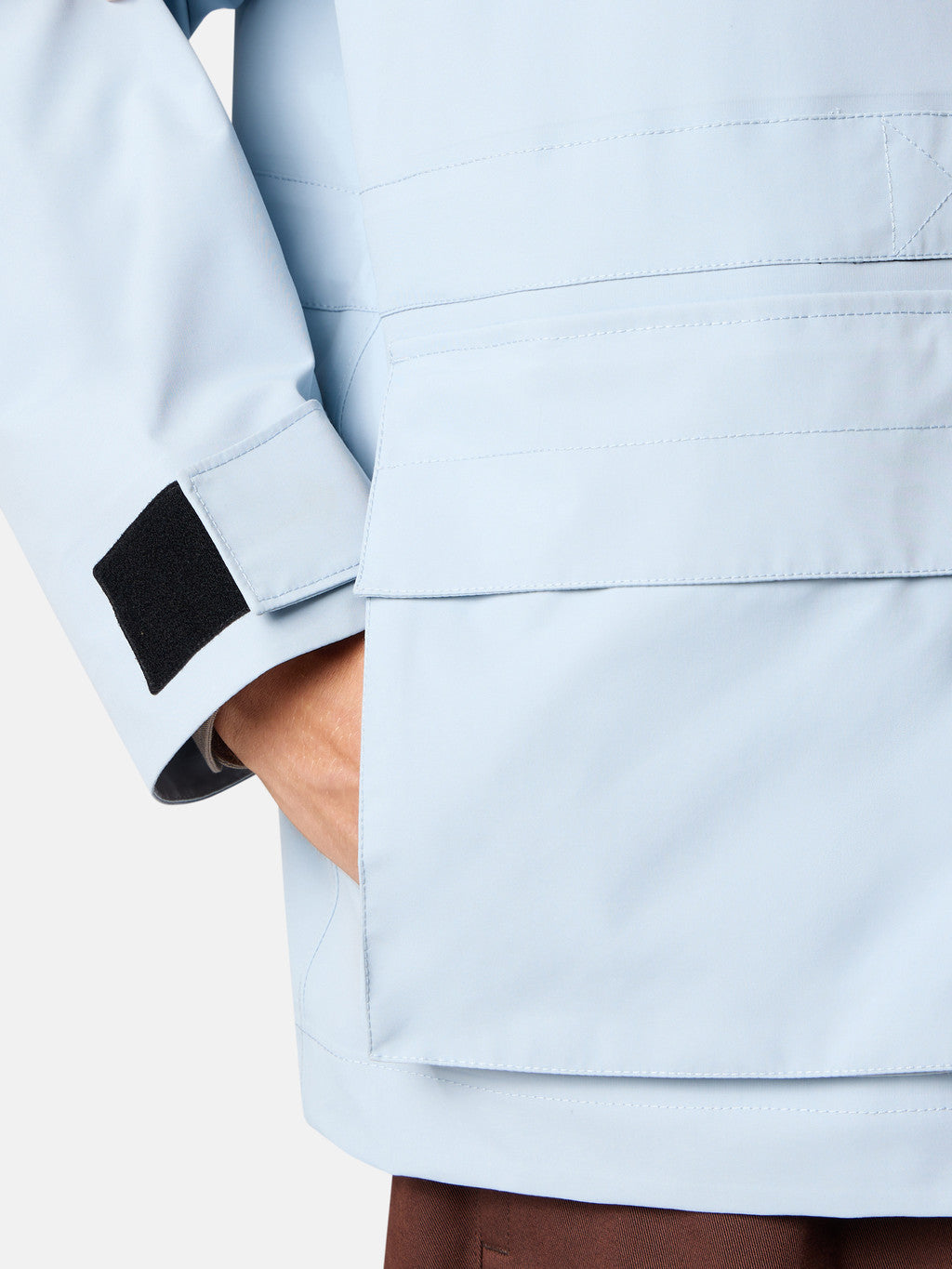 Hooded jacket in a PERTEX SHIELD performance fabric is made of 3 layers. The nylon outer face is laminated to a breathable, wind- and water-resistant membrane and protected internally by a warp knitted run-proof nylon tricot. Treated with a specific anti-drop agent.